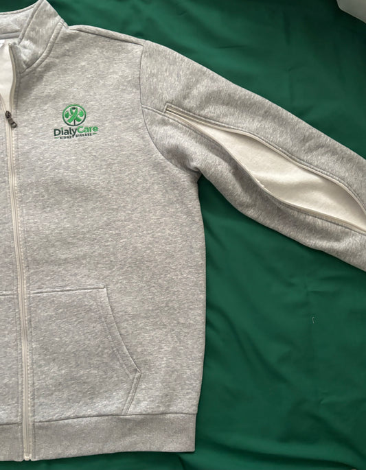 Our Signature Dual Sleeve,Fistual-Friendly Hemodialysis Jacket are designed with patient in mind-providing easy access,soft and comfort and confidence no matter which arm your fistual or graft is on. DialyCare-Where Comfort Meets Care.